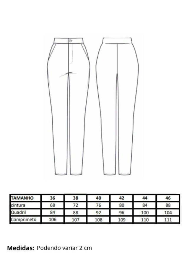 A calça Amora é um item essencial no guarda-roupa feminino, perfeito para diversas ocasiões. Desde o ambiente de trabalho até eventos sociais, seu design versátil combina facilmente com camisas sociais ou casuais, proporcionando um visual impecável em qualquer ambiente.Com seu corte slim e cintura média, esta calça oferece um ajuste confortável e favorecedor, ideal para destacar sua silhueta com estilo. Possui bolsos funcionais que combinam praticidade com elegância.Feito 100% no Brasil.Composição: 98% algodão, 2% elastanoRef:002346