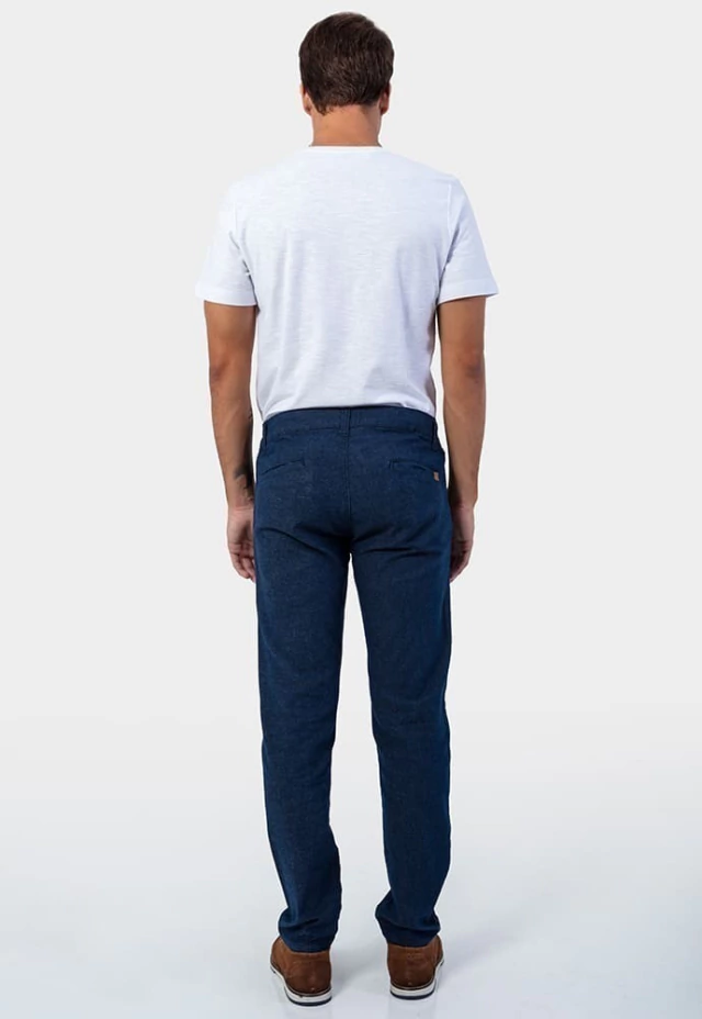 A calça Jerry é confeccionada em tecido 58% algodão, 40% poliéster e 2% elastano. A peça possui bolsos diagonais na parte frontal, bolsos embutidos posteriores, passantes no cós e fechamento frontal por zíper e botão.Composição: 58% algodão, 40% poliéster e 2% elastano.