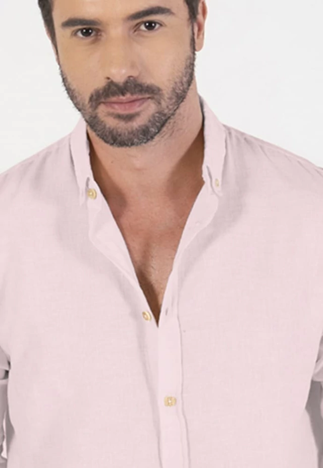 A camisa é confeccionada em tecido 55% linho e 45% algodão, possui modelagem tradicional, gola com botões, mangas longas com abotoamento nos punhos, fechamento frontal por botões, detalhe com o logo da marca bordado na altura do peito, barra levemente arredondada.Composição: 55% linho e 45% algodãoRef:003513.
