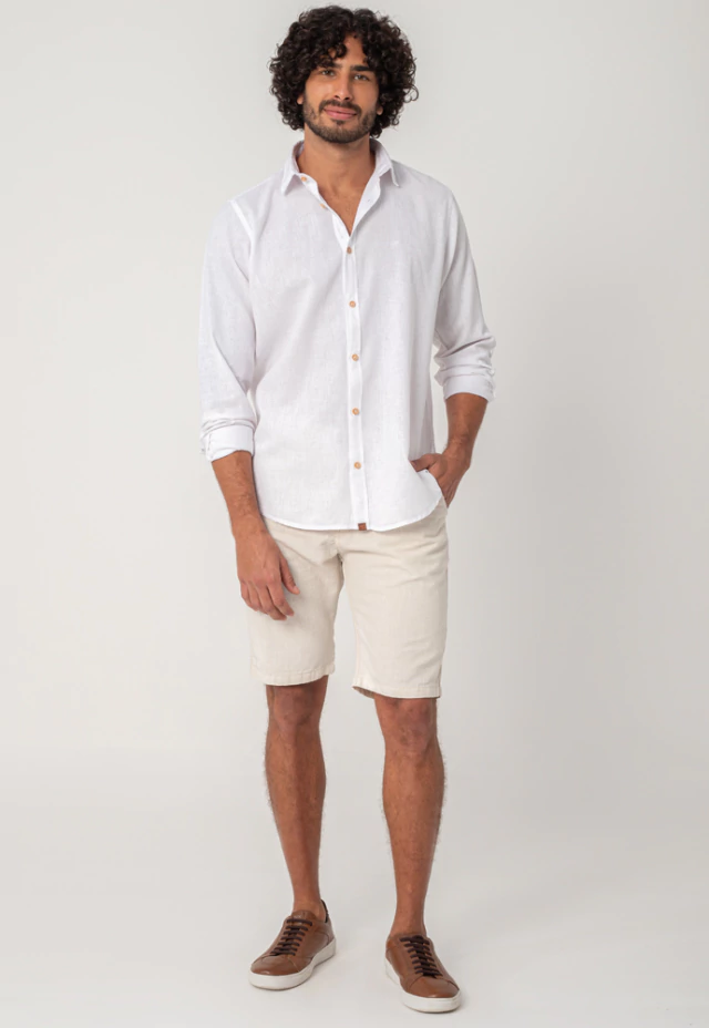A camisa Casual Capri é confeccionada em tecido 55% linho e 45% algodão. Possui mangas longas com abotoamento nos punhos, detalhe com o logo da marca bordado no tom do tecido na altura do peito e fechamento frontal por botões.Composição: 55% linho e 45% algodão.Ref:004277