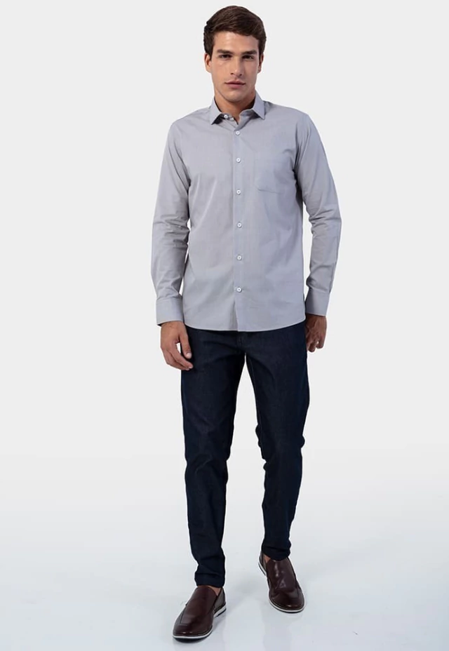 A Camisa social falso xadrez é confeccionada em tecido 100% algodão e modelagem classic fit, possui bolso, colarinho italiano, mangas longas com abotoamento nos punhos, fechamento frontal por botões.Composição: 100% algodão.Ref:003992