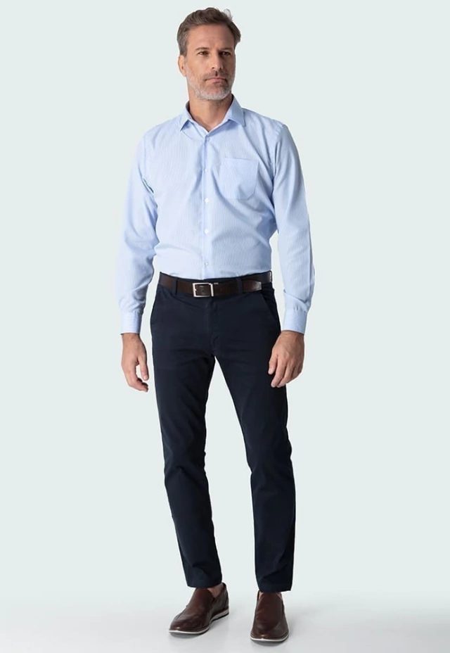Camisa social masculina manga longa classic fit falso xadrez cinza